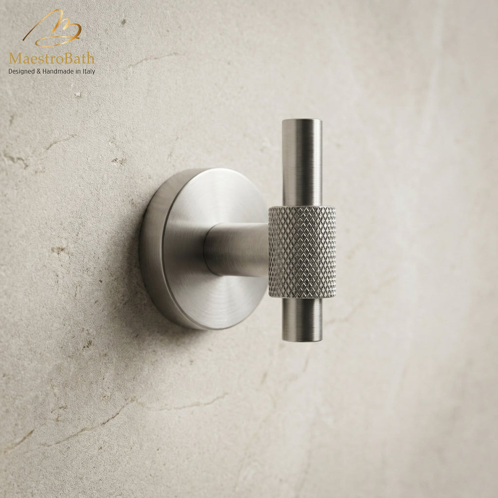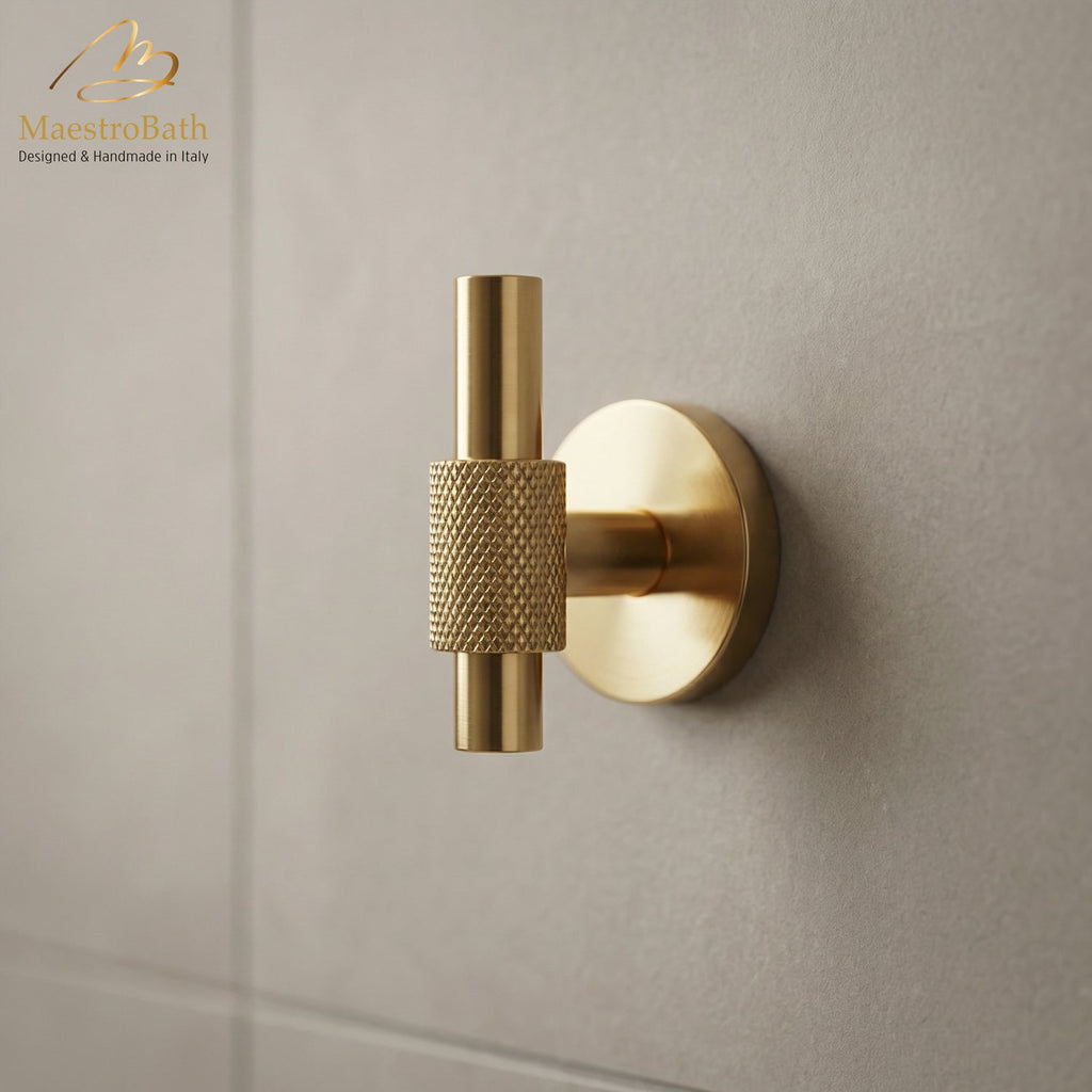 Compact yet statement-making, this sculptural robe hook combines bold form with refined detailing. Constructed from premium solid brass for strength and longevity in moisture-rich environments. Available in Chrome, Brushed, Polished Gold, Brush Gold, and Matte Black finishes.