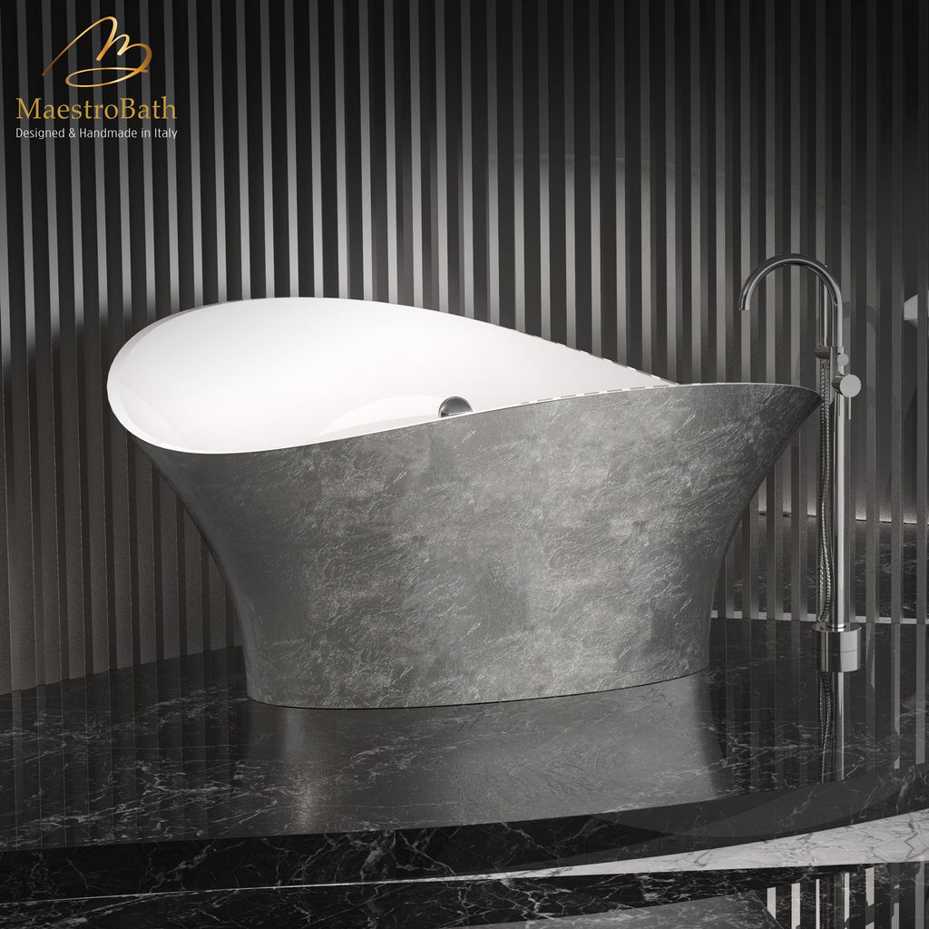 Extravagant and Avant Garde. The Calla Lilly Contemporary Italian Luxury Bathtub is the expression of the Architectural Evangelist with its creative curiosity and technical virtuosity to awaken an unimagined brilliance. The Calla Lilly Contemporary Luxury Bathtub is an extraordinary art unto itself, hand-crafted of the finest materials with a complex three-dimensional mastery composition. Calla Lilly emulates brilliance with its distinctive and fashionable runway aesthetics. Luxurious with its simplicity, the Calla Lilly Contemporary Bathtub is designed for any contemporary or transitional style. This contemporary bathtub is available in designer inspired colors: Gold Leaf, Red, Black, and White - will look stunning and make a bold statement in any Mater’s bathroom. Floor Mount installation ensures this bathtub will stand out in your bathroom as a striking focal point. Vetro Freddo is one of the most exquisite and cutting-edge glass & resin design materials, which minimizes the need for any special maintenance. Furthermore, Vetro Fredo design material is durable making it practical for most luxury design applications.