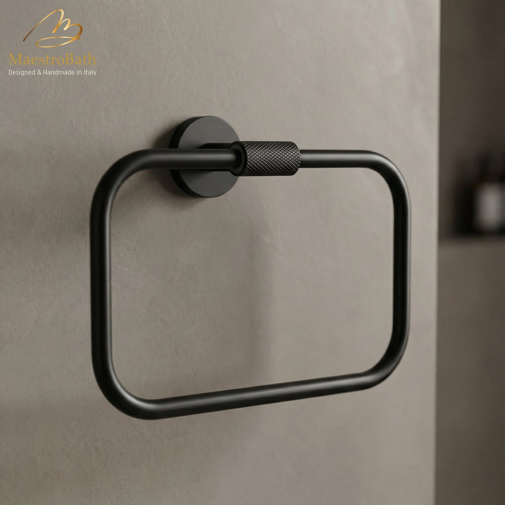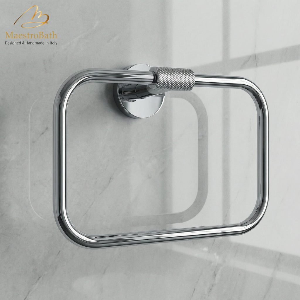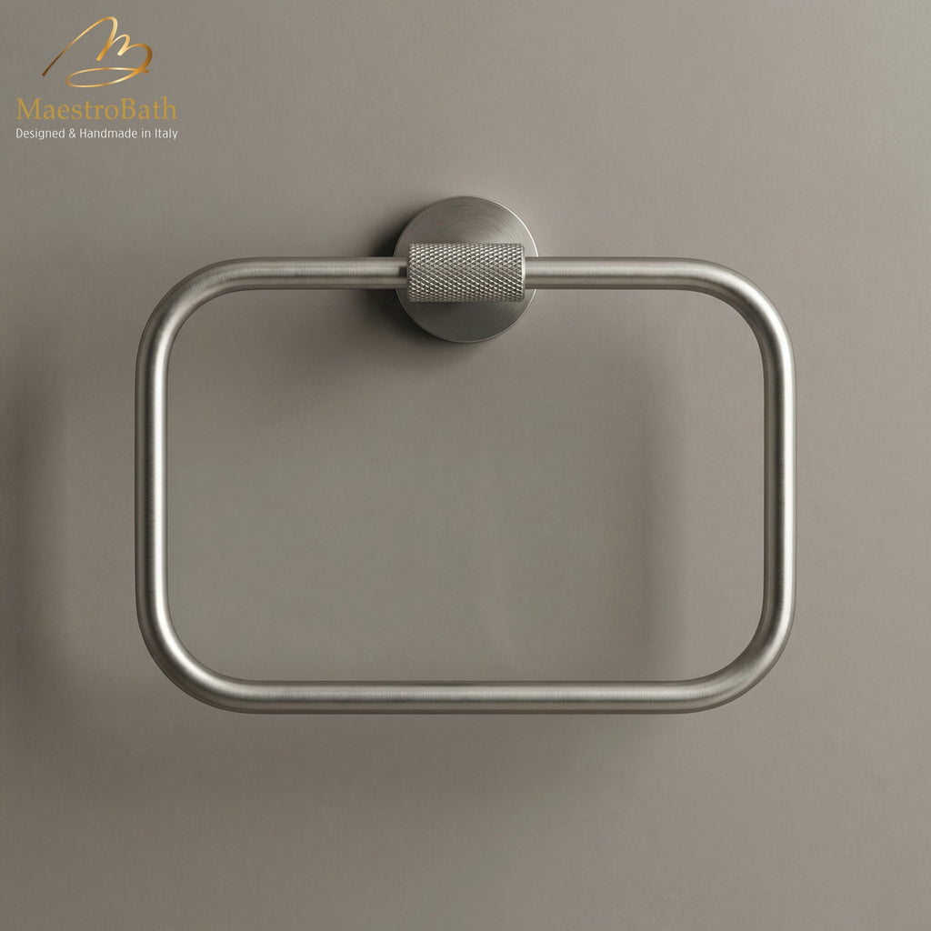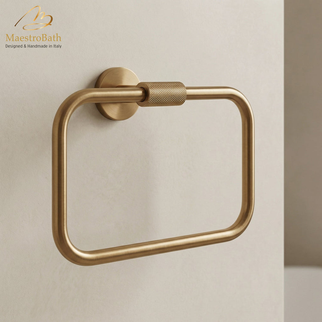 Featuring a bold square silhouette with minimalist appeal, this towel ring offers both function and refined design. Precision-engineered from solid brass for reliable everyday use. Available in Chrome, Brushed, Polished Gold, Brush Gold, and Matte Black finishes.