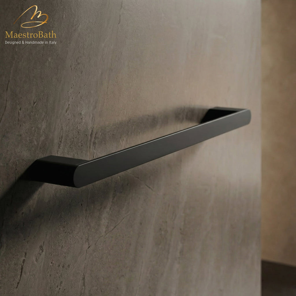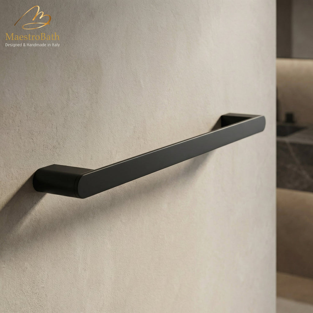 A sleek and minimalist towel bar designed with clean architectural lines for modern interiors. Crafted from solid brass for superior durability and resistance to corrosion. Available in Chrome, Brushed, Polished Gold, Brush Gold, and Matte Black finishes.